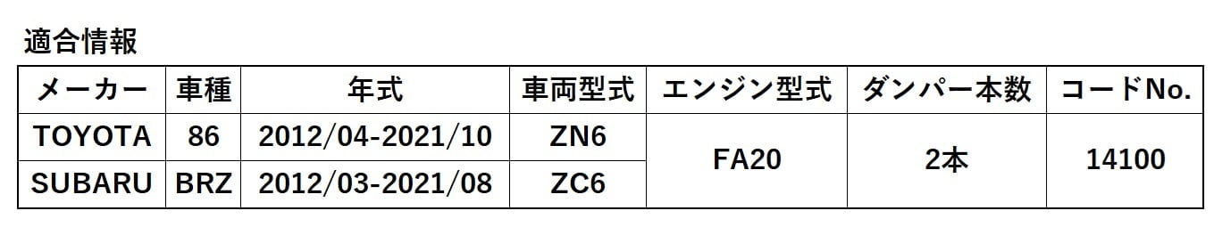 【SALE】ENGINE HOOD DAMPER 86/BRZ(ZN6/ZC6)【14100】